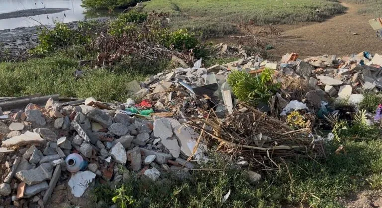 Felipe Gomes também destacou que existe um ponto específico destinado ao descarte de entulhos nas proximidades do mangue, mas que parte da população continua utilizando locais inadequados para se desfazer dos resíduos. “Acredito que falta uma ação de educação por parte da Prefeitura, de vir aqui nas residências e orientar os moradores a fazer esse descarte regular e não no mangue”, afirmou.