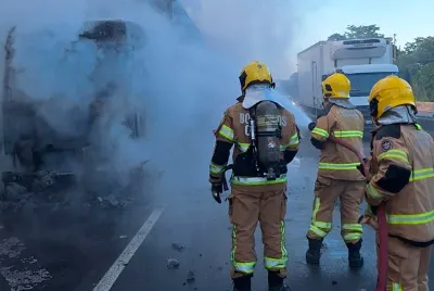 Carreta bitrem pega fogo e provoca grande fumaça em trecho da BR-101 em Estância